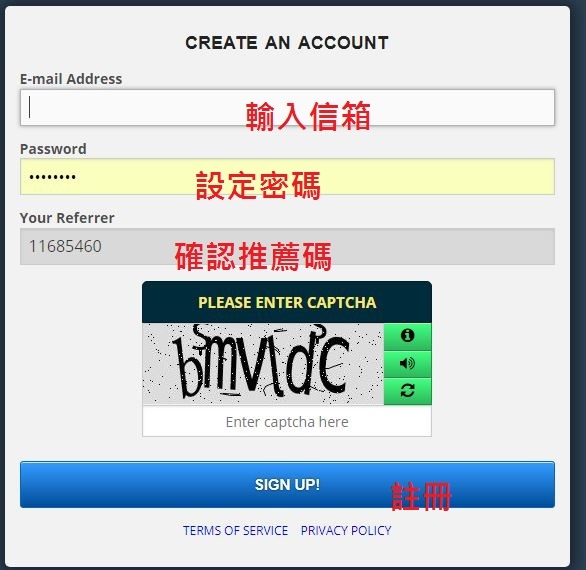 首先進到網站的註冊頁https://freebitco.in/?r=11685460