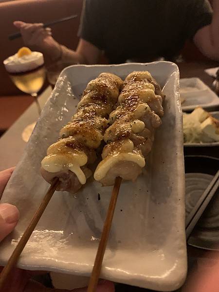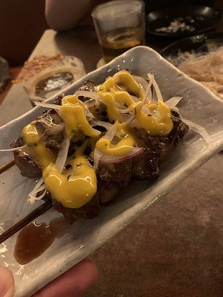 焦糖雞肉串 好吃,讓人眼睛瞬間睜大。上層的焦糖烤得脆脆的。配上鮮嫩的雞肉,不油不膩。